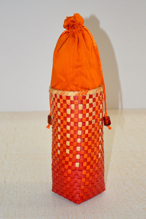 Handcrafted out of Palm Leaves and Silk, and held together around the top with a Draw String, this elegant Wine/Champagne Bottle Gift Bag instantly transforms a bottle of Wine / Champagne into a thing of beauty.