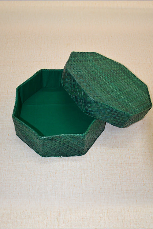 Beautiful, hexagonal shaped box handcrafted of Screw Pine Leaves. These boxes are designed to store jewellery, scarves, accessories, craft supplies, medicines, toiletries and much more. Strong and durable, this comes with an inner lining of cloth.