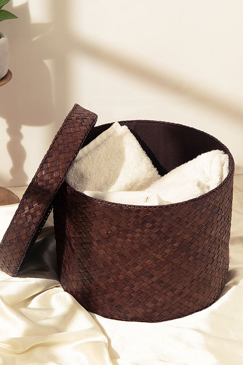 Storage Box beautifully handcrafted out of dried and processed Screw Pine leaves. These boxes can be used for keeping scarves and stoles, storing games, puzzles and toys, organizing craft supplies, essentials and much more. Strong and durable these come with an inner lining of cloth.
