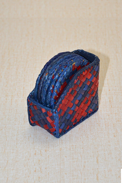 Screw Pine Tea Coasters Round (Red-Blue)