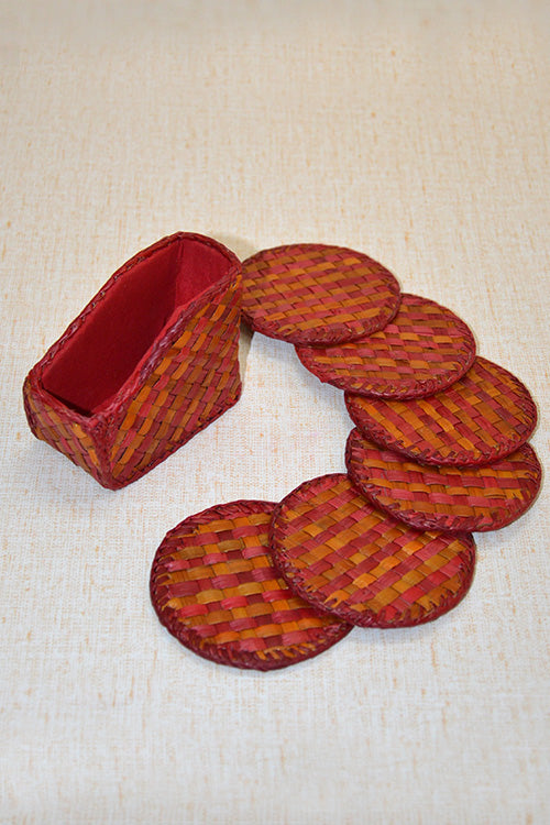 Set of six Tea Coasters handcrafted out of woven mats of dried and processed Screw Pine Leaves.
