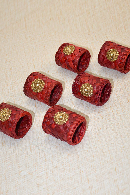 Set of six Napkin Rings beautifully handcrafted out of Screw Pine Leaves. Adds a touch of colour and rustic charm to your dining space.