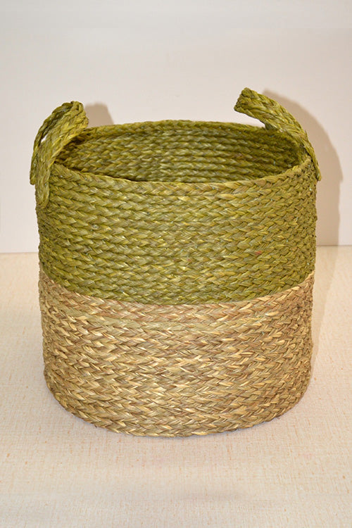 Sabai Grass Round Storage Basket & Planter Green Natural
